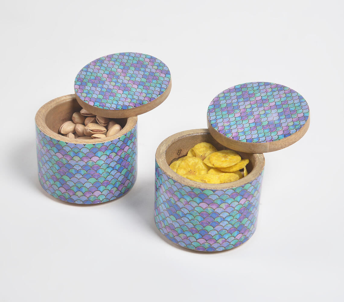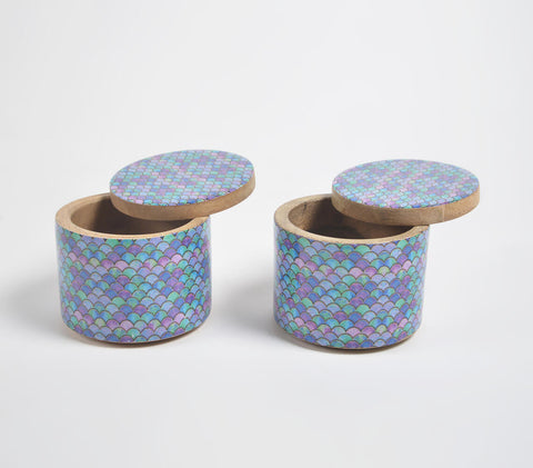 Lending a striking contrast to contemporary spaces, Imajen Home brings forth salt jar which will certainly bring elegance to any kitchen! Featuring statement hand-painted pattern on its surface, it also flaunts the natural beauty of wood. Thoughtfully designed and exquisitely crafted, this stunning offering has been hand-painted by highly adept artisans from North India. Hand painting is seen widely practiced in India by both men and women artists who are utterly talented. Visually striking, traditional paintings usually use naturally-derived, vegetable and plant-based solid colors or metallic ones from earthy minerals like mica. Artists first carefully design a rough sketch with pencils and markers on the base material to be painted, before filling locally-sourced colors with fine brushes in the marked design. Each artwork is all about the intricate detail and exclusivity!