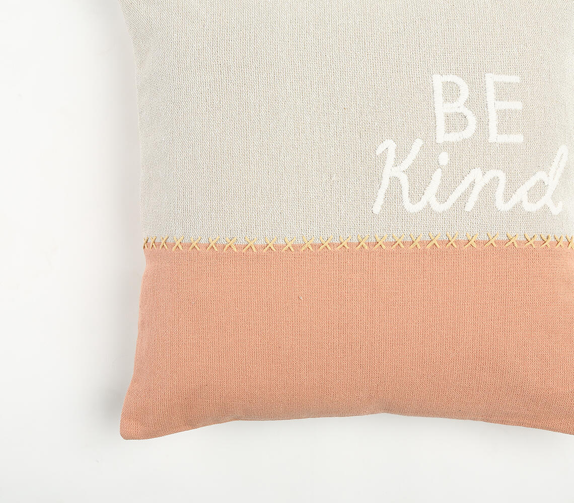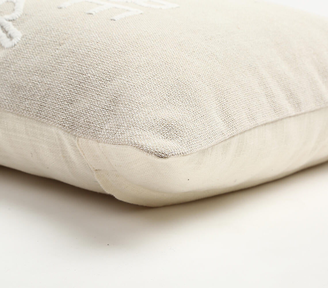 Tailored with love from cotton, this gorgeous cushion cover touts a colorblocked design with typography. It is an ideal pick for both indoor and outdoor spaces. The interplay of textures and technique make it a picture of sheer elegance and sophistication! It also features a concealed zip closure at the back for convenience. With careful handwork all along, the tasteful choice of color lends it an urbane look. This textile is a result of skilful handweaving done by proficient artisans. Handweaving is a strenuous process that requires perfect rhythm and coordination. The craft has stayed true to its roots even in the face of severe competition from power looms and employs more than 4.4 million weaver families!