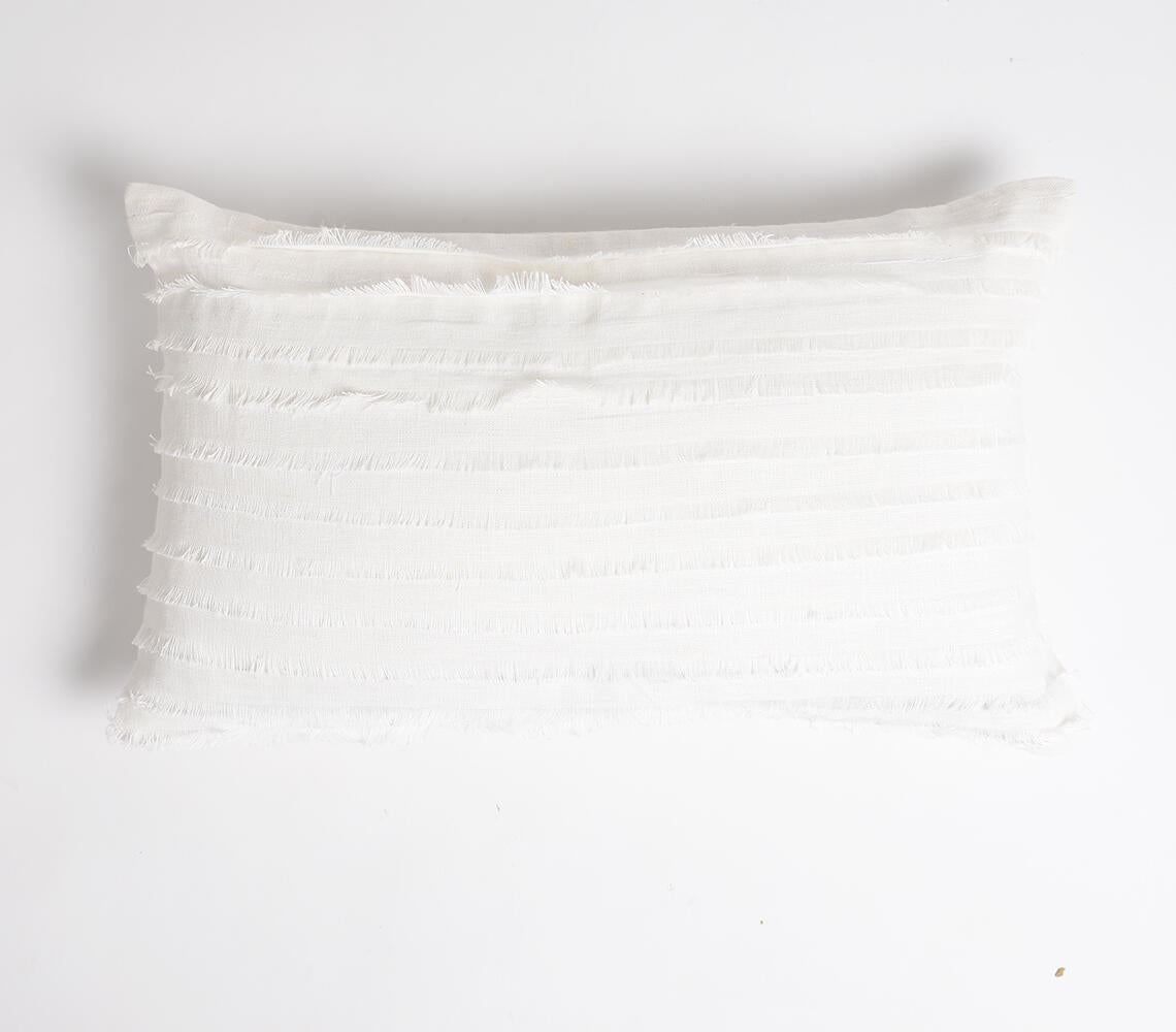 Tailored with love, this understated cushion cover touts a minimalistic design. Brought to you by Imajen Home and crafted by talented North Indian artisans, it is a picture of sheer elegance and sophistication, perfect for contemporary living spaces. It also features a concealed zip closure at the back for convenience. The textile is a result of skilful handweaving comprising a strenuous process that requires seamless rhythm and coordination. The process may be unhurried but it bears the artisanal stamp of exclusivity!